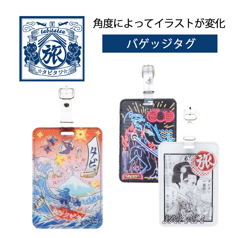 角度を変えるとイラストが変化する、レンチキュラータイプのバゲッジタグ。遊び心満載のデザインで、見ているだけでも楽しい気分に!大きめのサイズなのでスーツケースの目印にピッタリです。