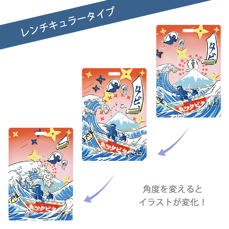 角度を変えることでイラストが変化する、レンチキュラータイプです。イラストの変化は各カラー3種類です。