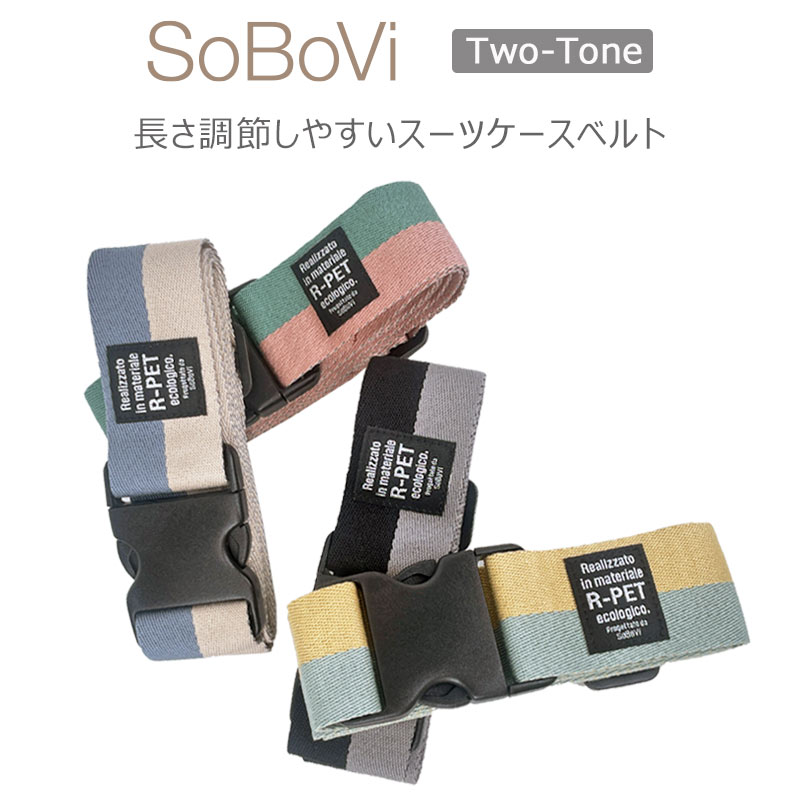 長さ調節のしやすいタイトフィットタイプのスーツケースベルト。スーツケースの中身の飛び出しを防ぎ、目印にもなります。テープ部分はペットボトルをリサイクルした素材を使用しています。