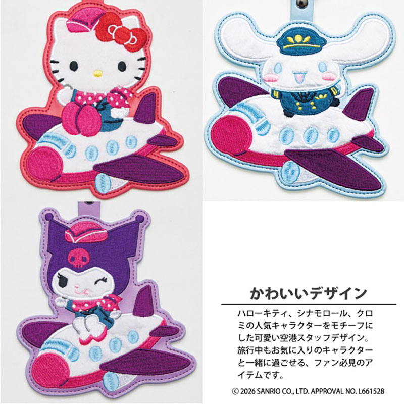 ハローキティ、シナモロール、クロミの3種のかわいいデザインでスーツケースやバッグに付ければ荷物の目印にもぴったり。
