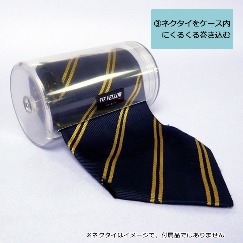 海外旅行やビジネス出張の時のネクタイを、形くずれせずにコンパクトに収納できるネクタイケース。くるくるとネクタイを巻くタイプなので、携帯にも収納にも便利!はずしたネクタイのしめジワを伸ばしながら収納可能です。