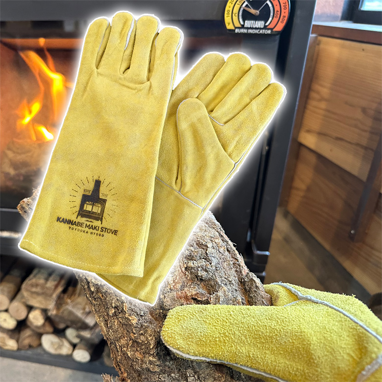 耐熱 グローブ 手袋 牛革 レザーグローブ 左右セット フリーサイズ 薪ストーブ BBQ キャンプ オーブン料理 神鍋マキストーブ 送料無料