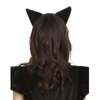 (メール便1個まで)猫耳カチューシャ ふせ耳 黒×黒 動物 仮装 コスプレ 衣装 アニマル コスチューム アク