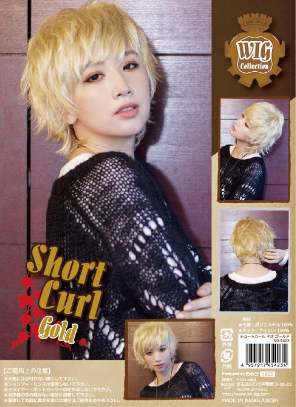 【 ショートカールネオゴールド 仮装 変身 ウィッグ かつら パーティーグッズ】