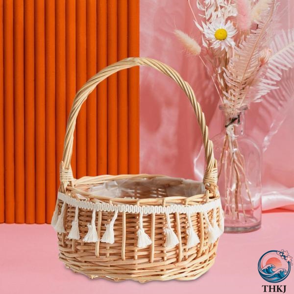 ハンドル付き収納バスケット ピクニックバスケット フラワーガールバスケット 寝室用 20cm