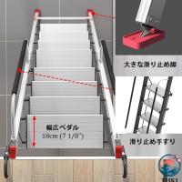 ロフト はしご ロフト 階段 8-14段 屋根裏 階段 滑り止め手すり付き折りたたみ式ロフトはしご アルミ屋根裏はしご 多機能ロフトはしご 幅広のペダル 省スペース