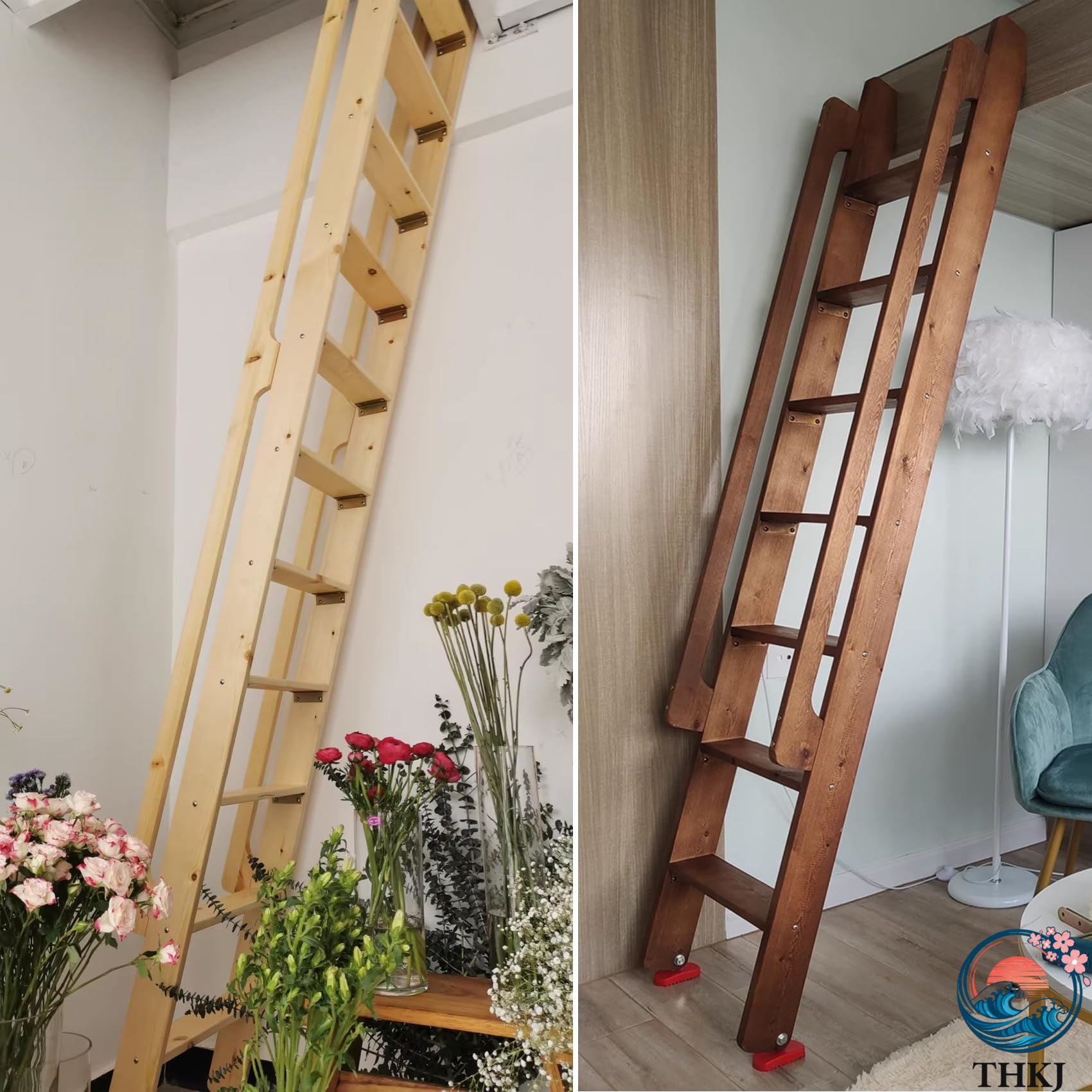 ベッド 階段 ロフト 木製はしご 1.25-2.75M 4段-10段 ロフトベッド 子供 大人 二段ベッド交換用はしご 滑り止め脚付き 肘掛け付き 屋根裏はしご ハシゴ 梯子 木
