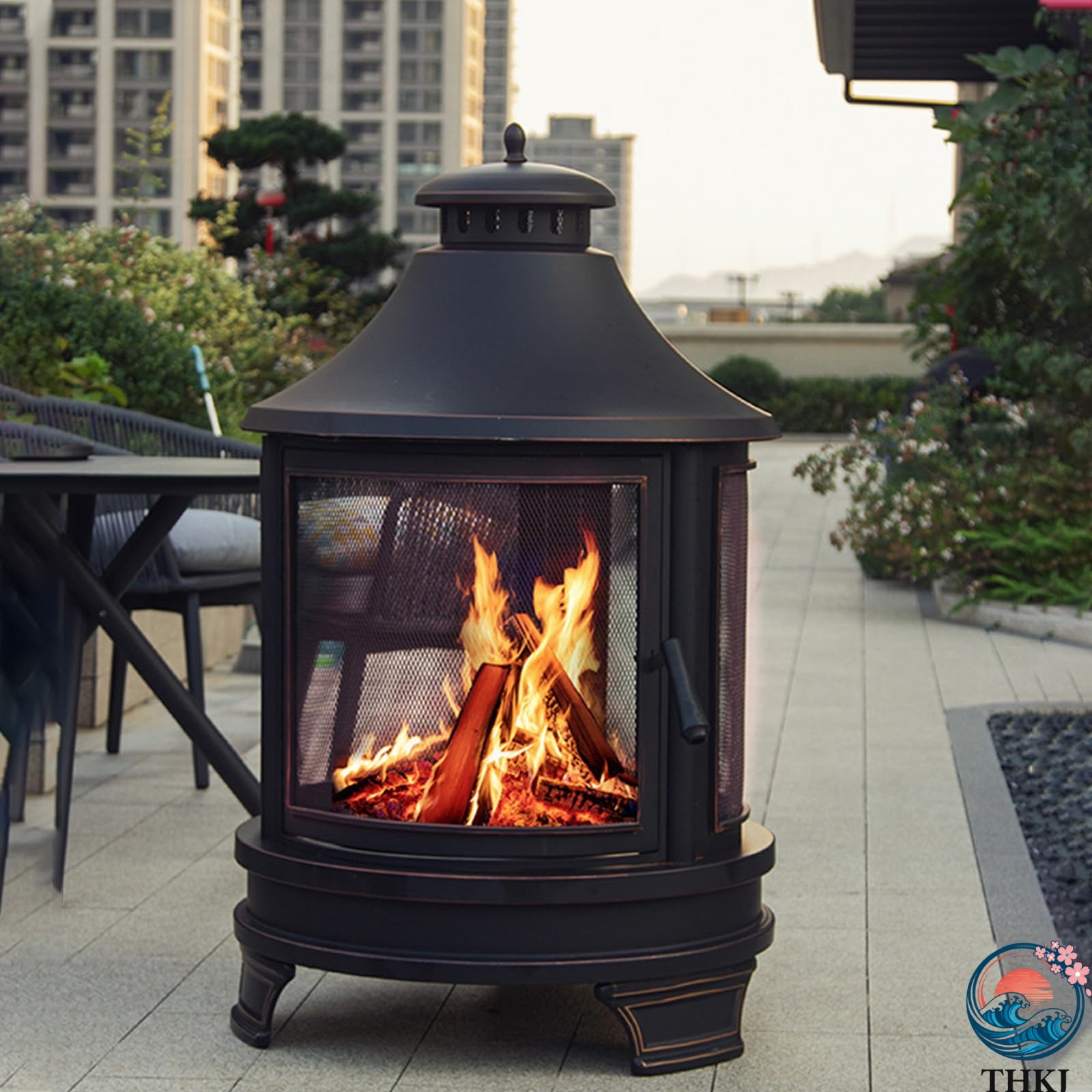 【安全安心】メッシュの蓋が付いているので、360°火の様子が見渡せ、燃えさしの飛散を防ぎ、空気の循環を良くします。火かき棒を使えば、薪や炭を安全に動かすことができます。これらの安全機能により、屋外での調理も安心して行えます。
