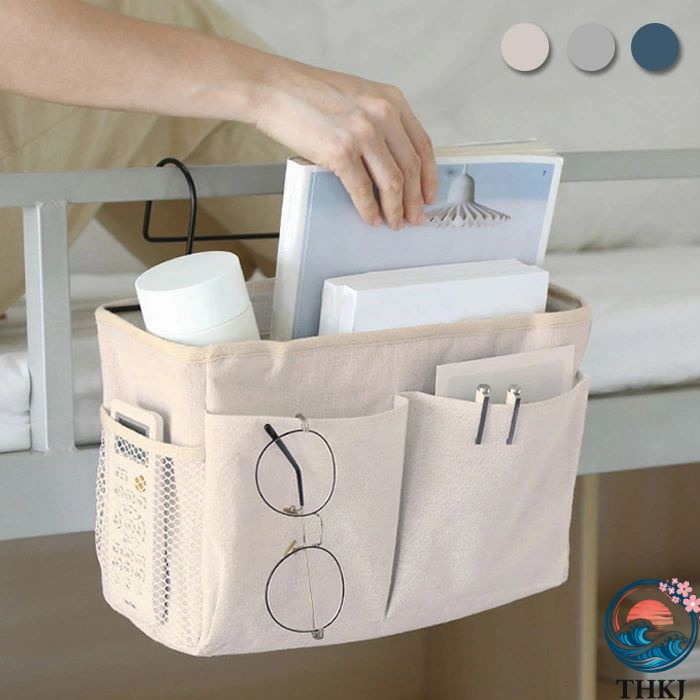 ベッドサイド ポケット 小物整理ラック テーブル 穴あけ不要 小物入れ THKJ 掛け袋 学生寮 リモコン 車用 吊り下げ 雑誌 本 バッグ 家庭用品 入院 卓上
