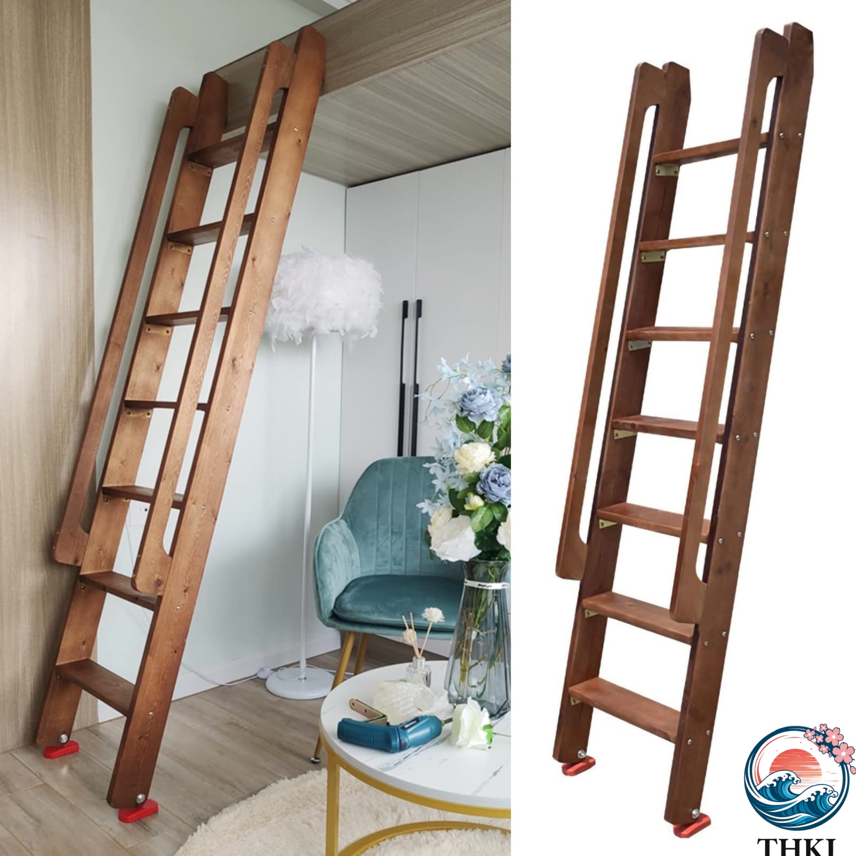 ベッド 階段 ロフト 木製はしご 1.25-2.75M 4段-10段 ロフトベッド 子供 大人 二段ベッド交換用はしご 滑り止め脚付き