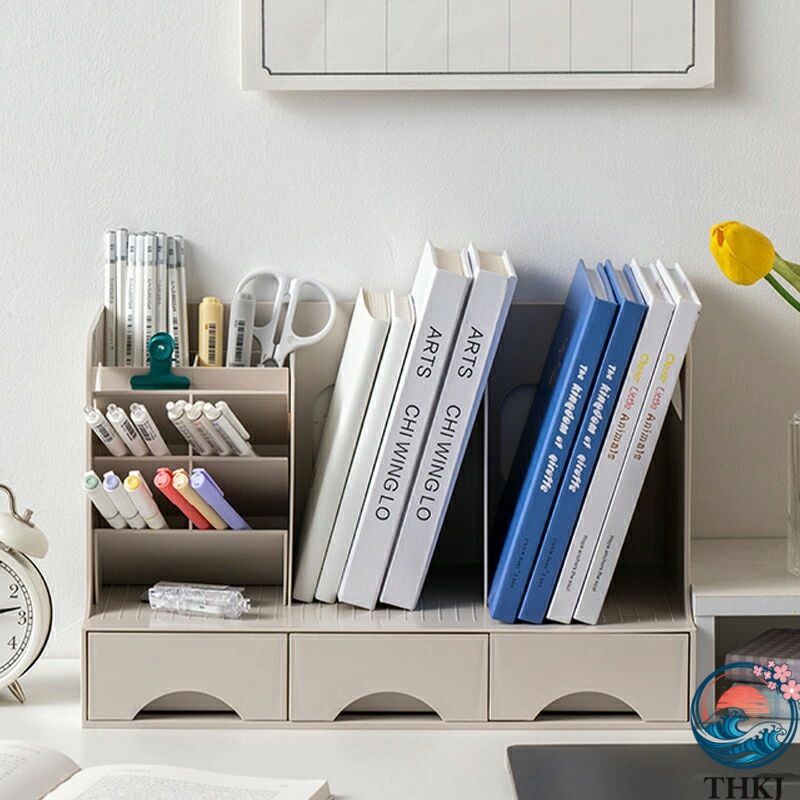 卓上収納ラック 本立て 多機能 ブックスタンド 3 段引き出し ペン立て 倒れない 卓上 ブックエンド 本 おしゃれ シンプル アイアン 白 雑誌 ファイル 新聞 書類