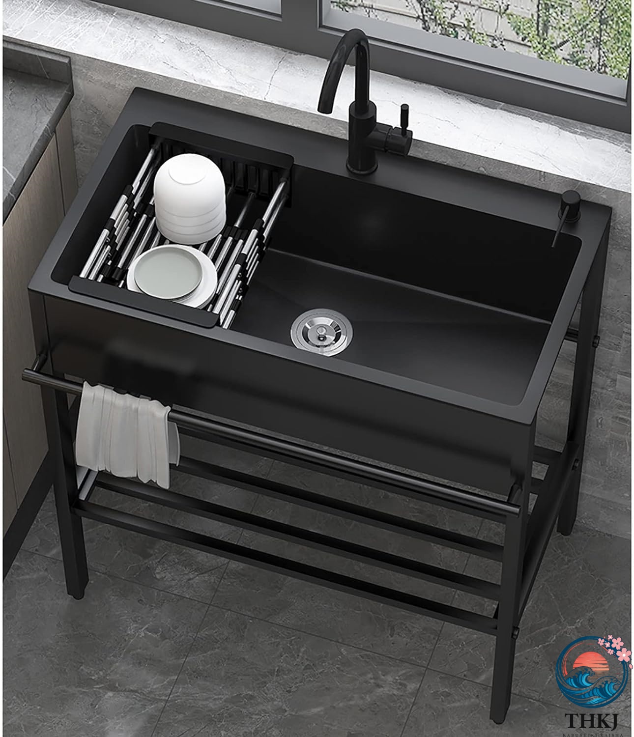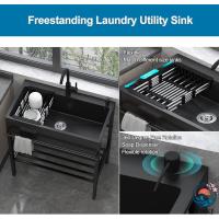 ? 実用的な自立型業務用シンク:シンクはサビに強いステンレス製なので屋外でも錆びにくく丈夫で長持ち。 作業台はお手入れが簡単で、黒い光沢を維持できます。丈夫で変形しません。流し台の下には便利な物置き棚付きで、作業に必要な道具や洗った物がおけます。 360度回転蛇口,温水と冷水の蛇口、角度を自由に変えて360度回転できるので、使いやすく、掃除も簡単です。