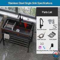 ? ヒューマナイズドデザイン:ステンレス製簡易流し台: オーバーフロー防止設計で、水が溢れないように、安心して安全です。S字脱臭排水管の設計で、汚水フィルターを詰まらせず、排水が速く、水漏れしない。鋼線ドレンパイプ内蔵、変形なし、防爆型。ステンレス製バスケット、多層ろ過、レタスの残り物の簡単な遮断、目詰まりなし、スムーズな排水。底辺に物置台付きで、洗剤や掃除道