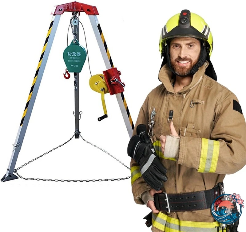 新登場三脚レスキューシステム 閉鎖空間用三脚と救助用ウインチ、下水道/マンホール用救助用リフティングシステムと落下防止ハーネス、建設現場用消防用ポータブ