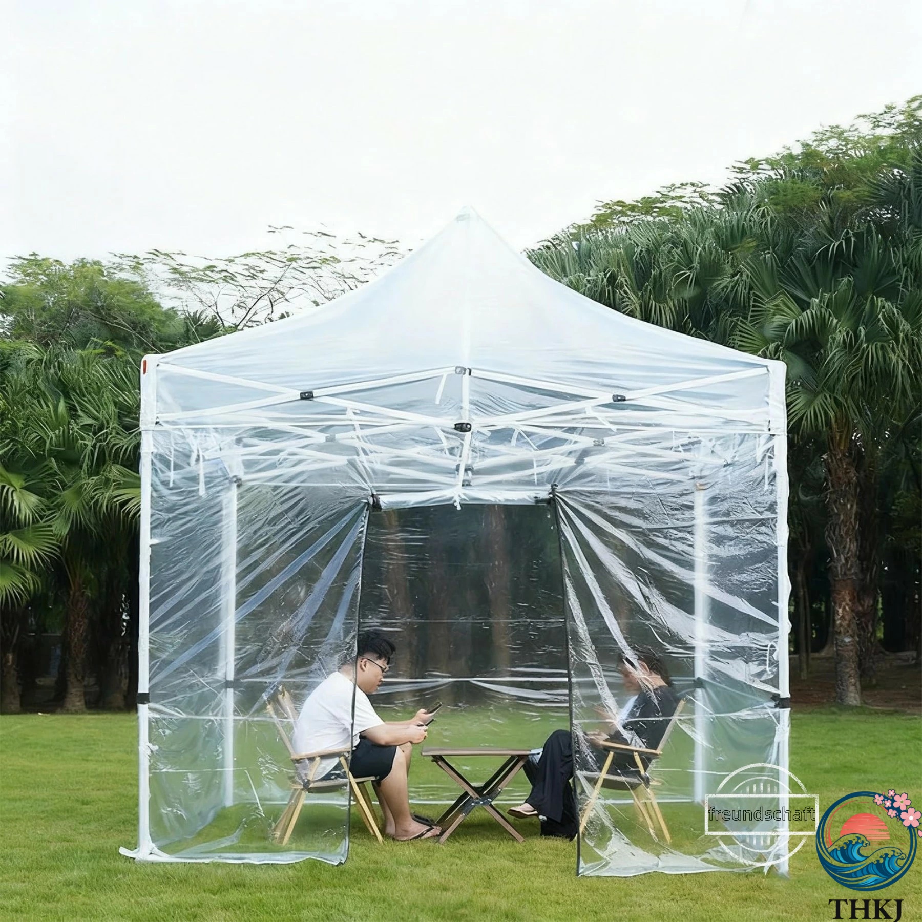 ? 【全透明PVC囲布で視界良好】タープテント サイドシート 囲布は無毒PV C透明素材を採用し、採光性視認性に優れるため夜市や屋台、陽光房のような開放的な空間を演出。耐候性抗老化の仕様です。「サンルーム」、自由に配置可能、一幕多用、植物温室としても使用可、防寒防風効果