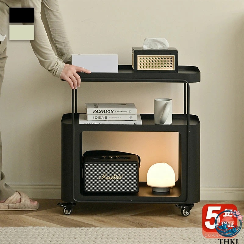 スチール製 サイドテーブル キャスター付き 幅59cm ソファサイドテーブル 可動式 ミニテーブル コンパクト 収納付き リビング 寝室 ベッドサイド バ