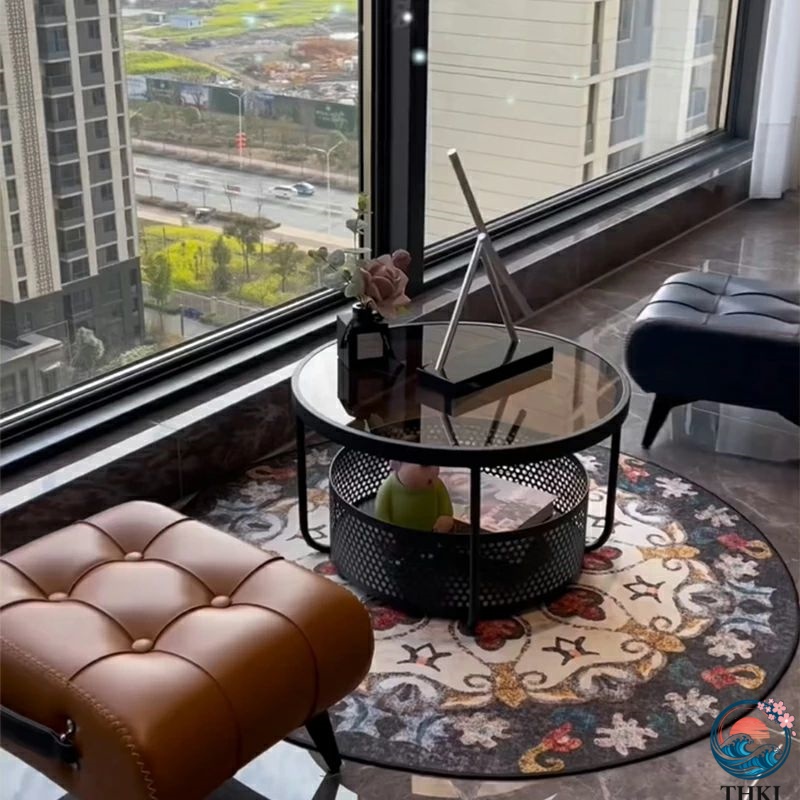 ローテーブル 丸型 ガラス天板 スチールフレーム 直径60cm 高さ30cm 収納付き サイドテーブル コンパクト 低め 窓際 寝室 バルコニー ブラック ホワ