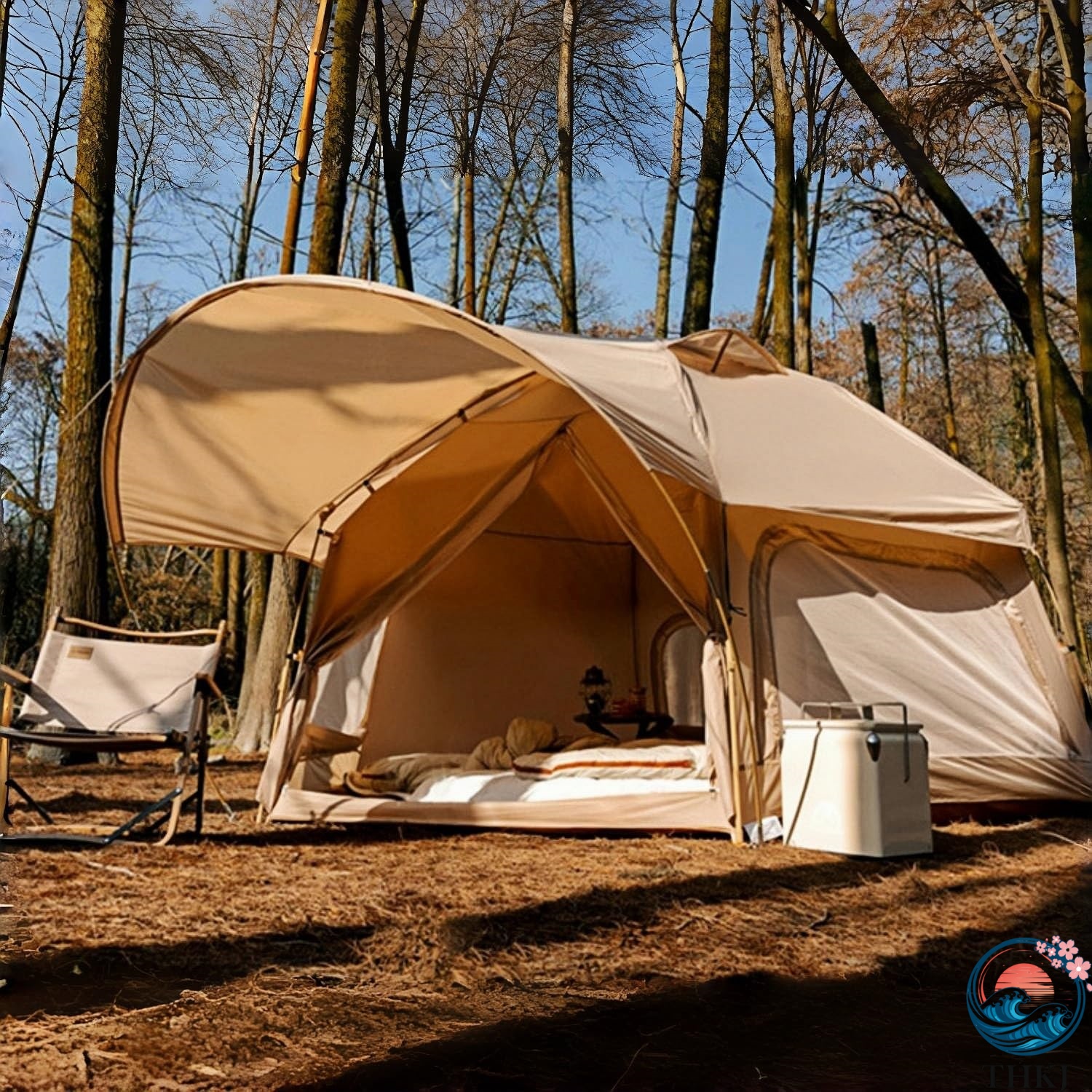 2. **日焼け防止と断熱**: テント生地には日焼け防止機能があり、紫外線と熱を効果的に遮断し、快適なキャンプ環境を提供し、長期の屋外活動に適しています。