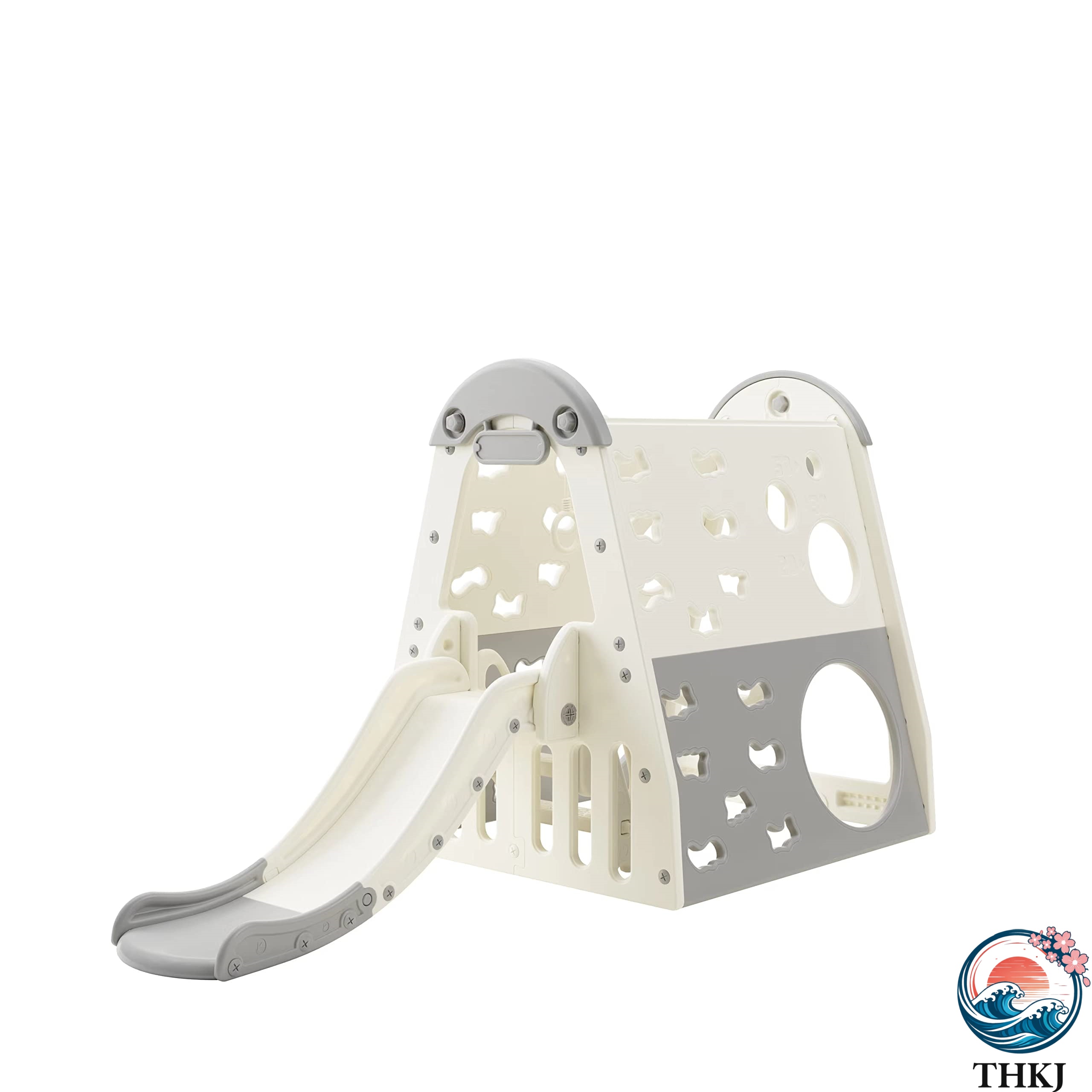 ? 商品名ジャングルジム 滑り台本体サイズ 幅255.3×奥行108×高さ133.7cm 本体重量:?30g 梱包重量:33kg 材? PP耐荷重:?50kg 対象年齢:1-8歳 カラー:ホワイト×グリーン メーカー1年保?原?国:中国 ?立品です ?立??:?30分