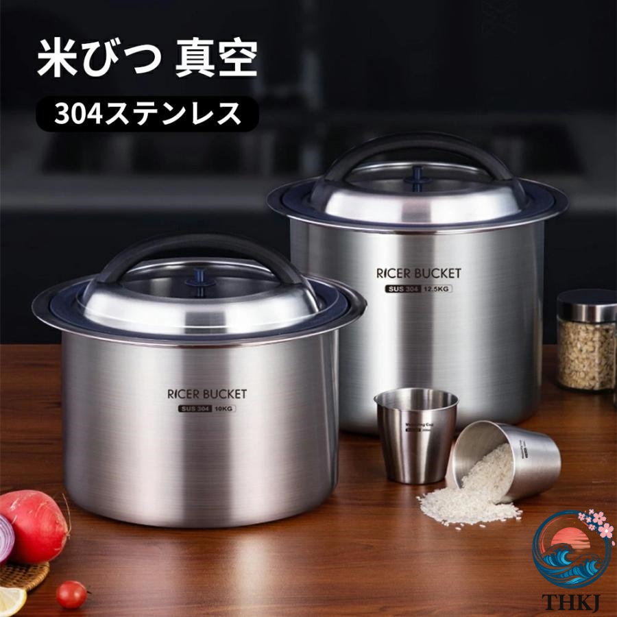 【真空密閉】米びつ ステンレス製 10kg/12.5kg 負圧シール 密閉容器 ライスストッカー 米櫃 防虫 防湿 保存容器 大容量 304ステンレス