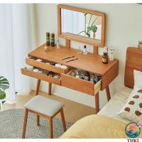 化粧台 デスク ドレッサー テーブル メイクテーブル カフェ おしゃれ 卓上 コンパクト 木製 木 幅80cm 省スペース 収納 スリム 鏡台 パソコンデスク