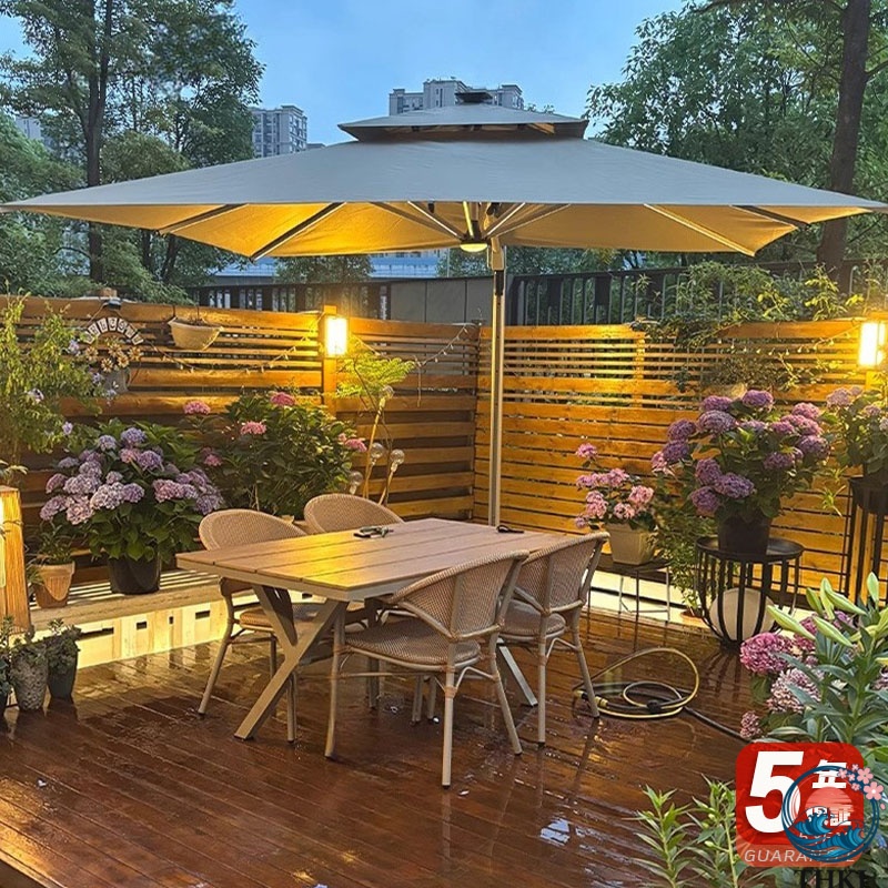 高密度でしっかりとした色糸布を採用。紫外線カットと撥水性能を兼ね備え、屋外使用に最適です。