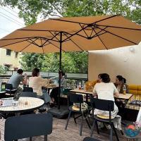 約280cmの大きな傘面で、屋外のテーブルやチェアをしっかりカバー。快適な日陰スペースを確保します。