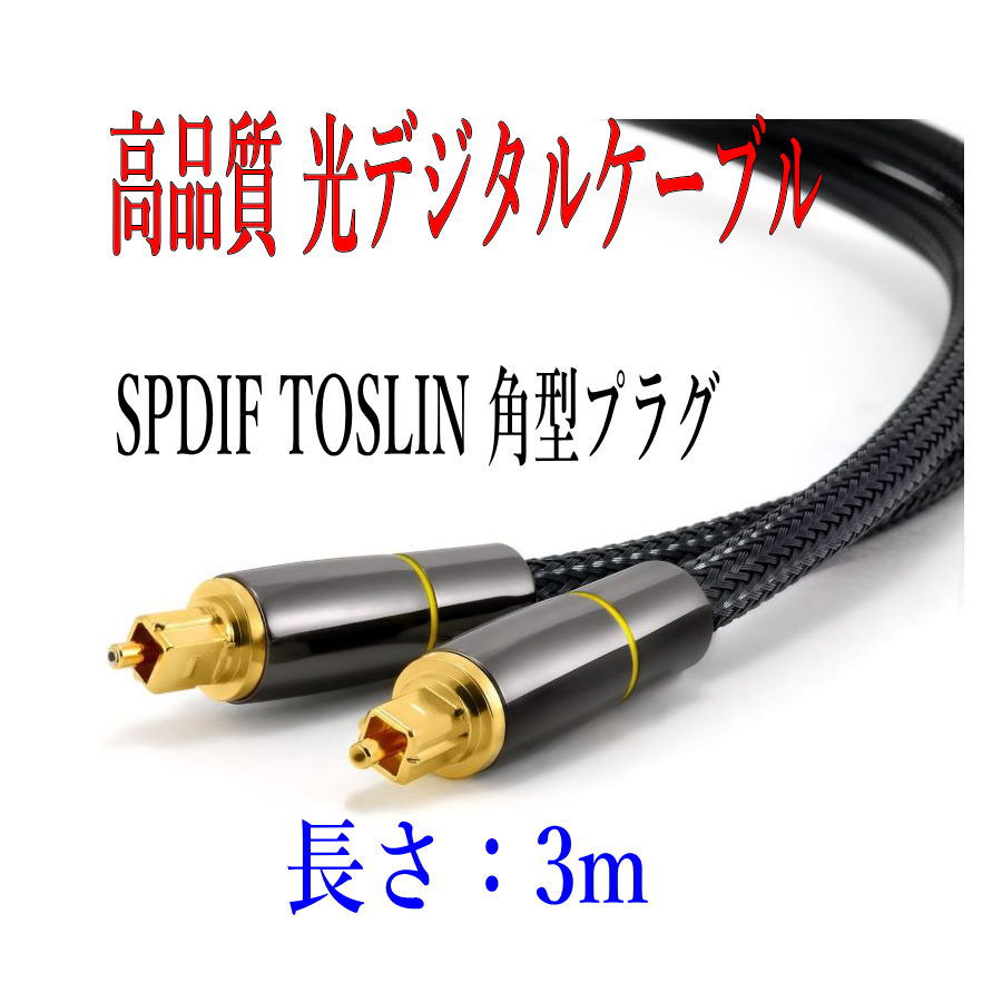 光デジタルケーブル 3m 高品質光ケーブル TOSLINK 角型プラグ オーディオケーブル/D005