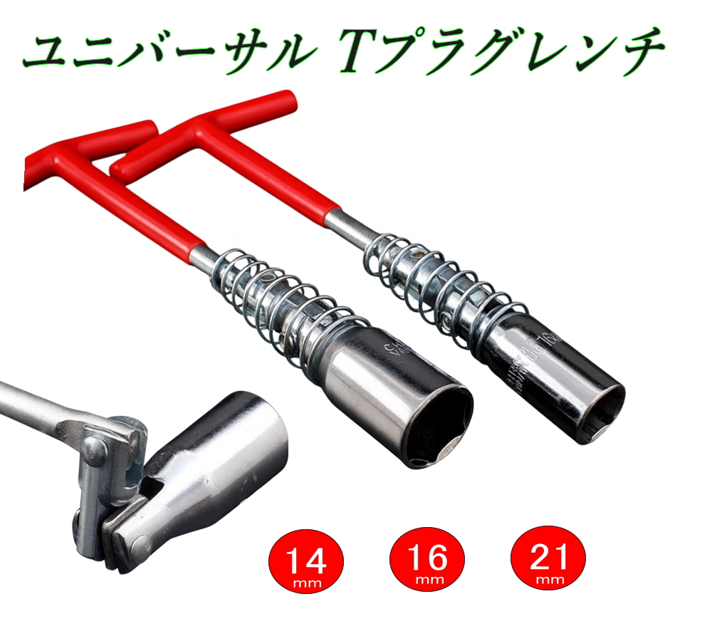 プラグレンチ T型 スパークプラグレンチ スプリング付き ソケットレンチ 整備工具 14mm 16mm 21mm 車 バイク 工具セット メンテナンス エンジン修理 DIY 整備士 汎用レンチ 除雪機