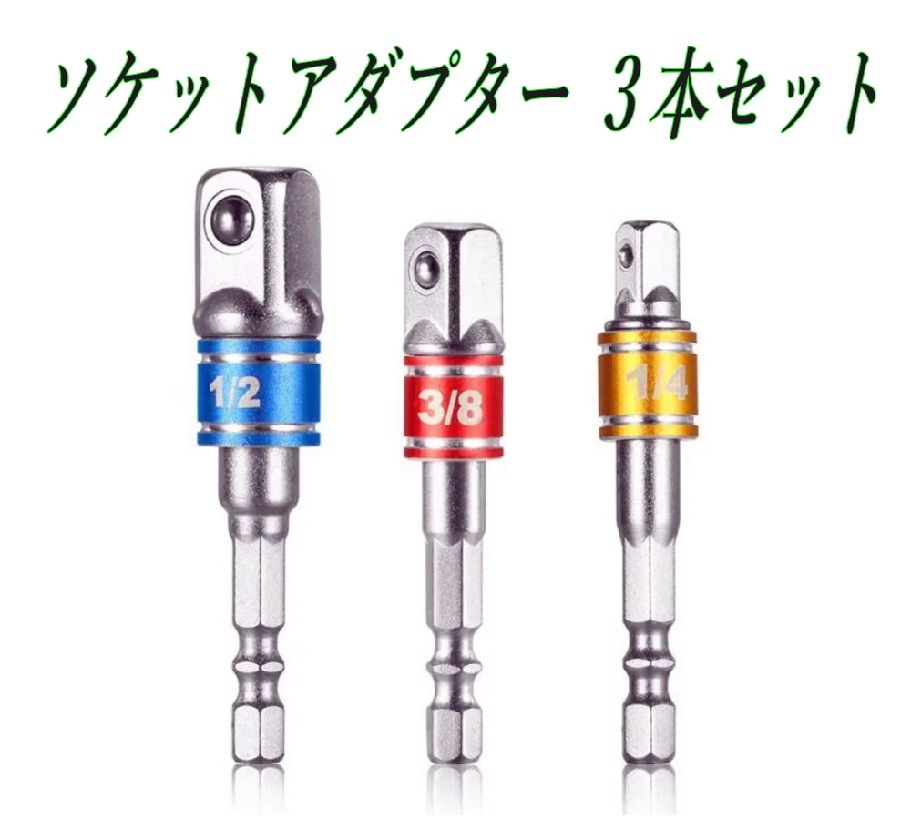 ・1/4"六角軸→1/2"・3/8"・1/4" 変換アダプター 3本セット