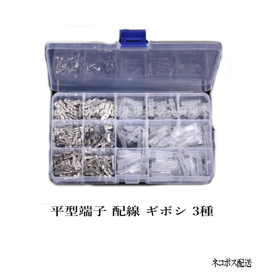 平型端子 配線 ギボシ 3種、オス端子、メス端子、メス絶縁スリーブセット 合計270個セット
