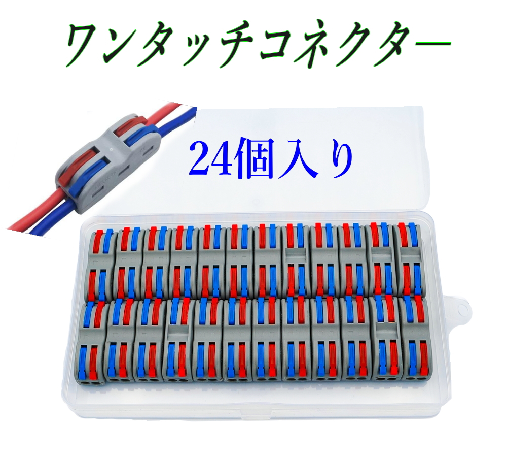 配線接続ワンタッチコネクタ― 24個 2P 2本2列接続 延長コネクタ― 平行線 ケース入り