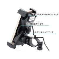 バイク スマホホルダー ハンドル固定 USB 電源 ON/OFFスイッチ 付属 ダイヤル式 ガッチリ4点固定式