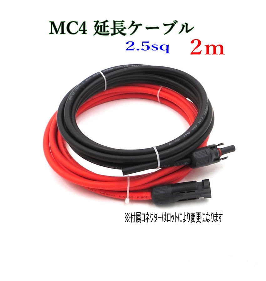 ソーラーケーブル延長ケーブル MC4 片側コネクタ付き 2m 2.5sq 赤と黒2本セット