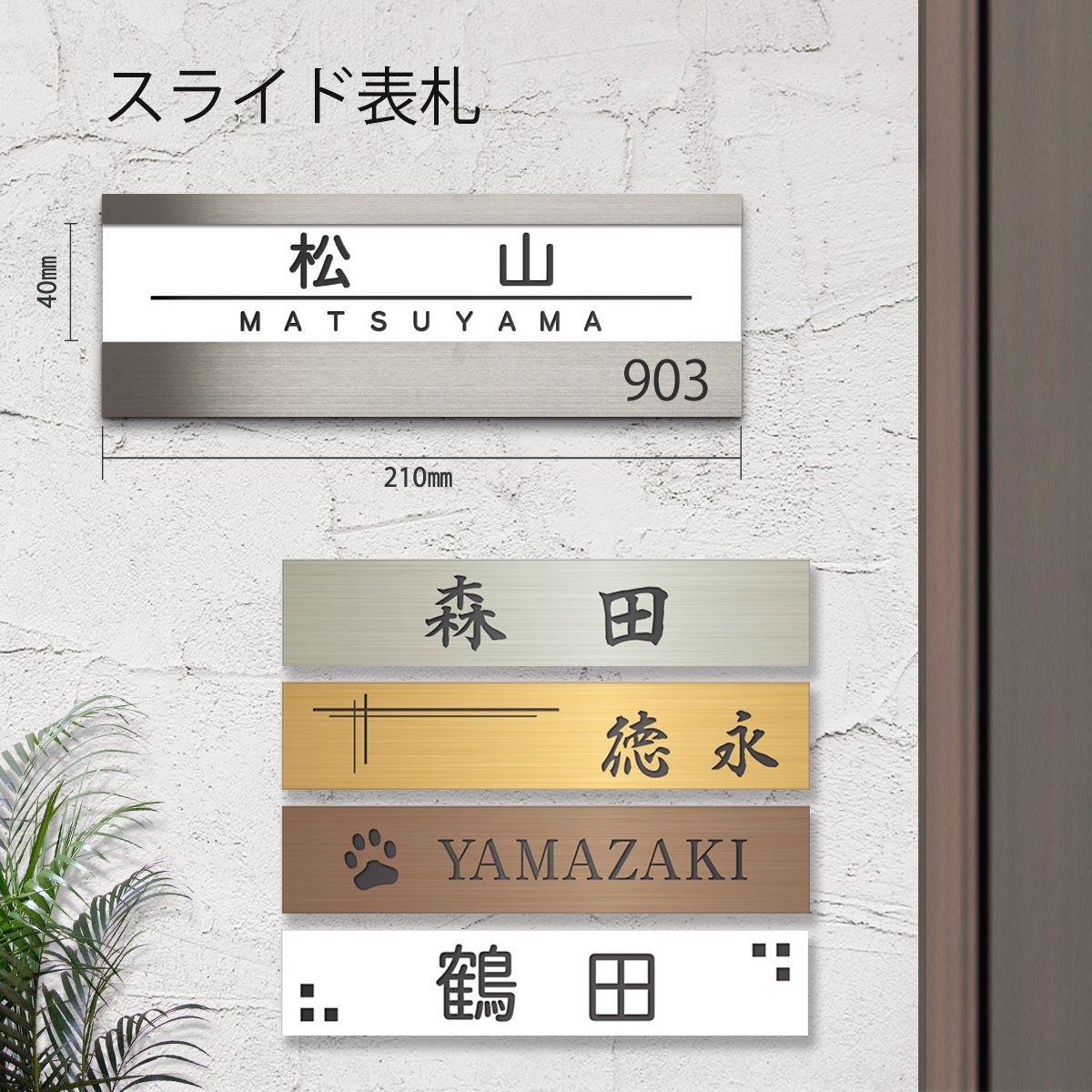 表札 プレート スライド 差し込み 210mm×40mm 屋外対応 マンション デザイン おしゃれ ゆうパケット1