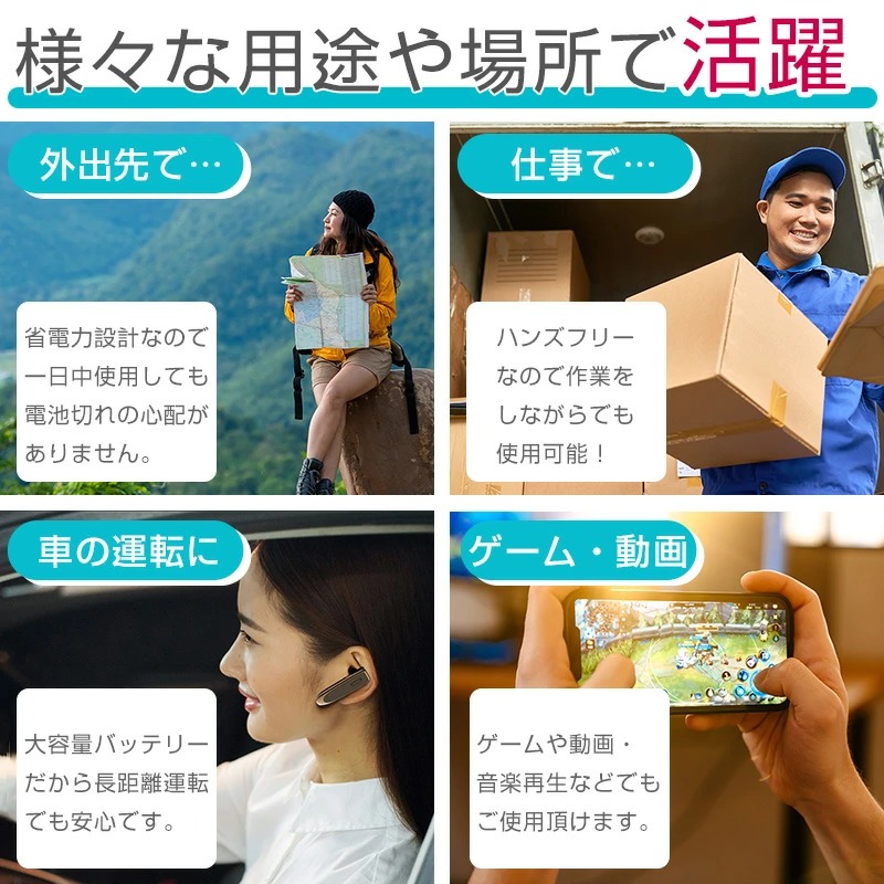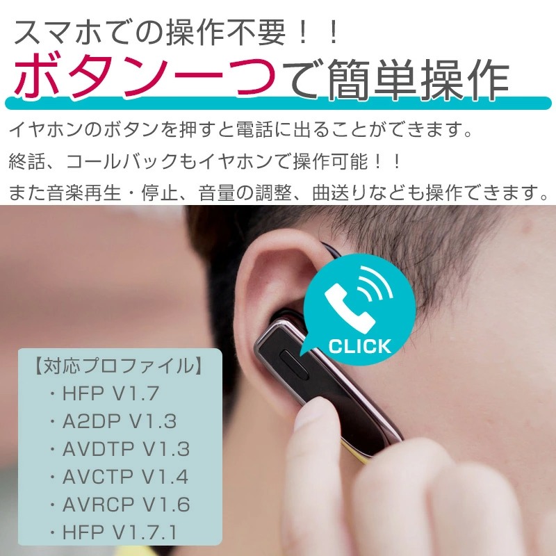 bluetooth イヤホン 片耳 マイク付き ワイヤレスイヤホン iPhone android スマホ ヘッドセット 耳掛け