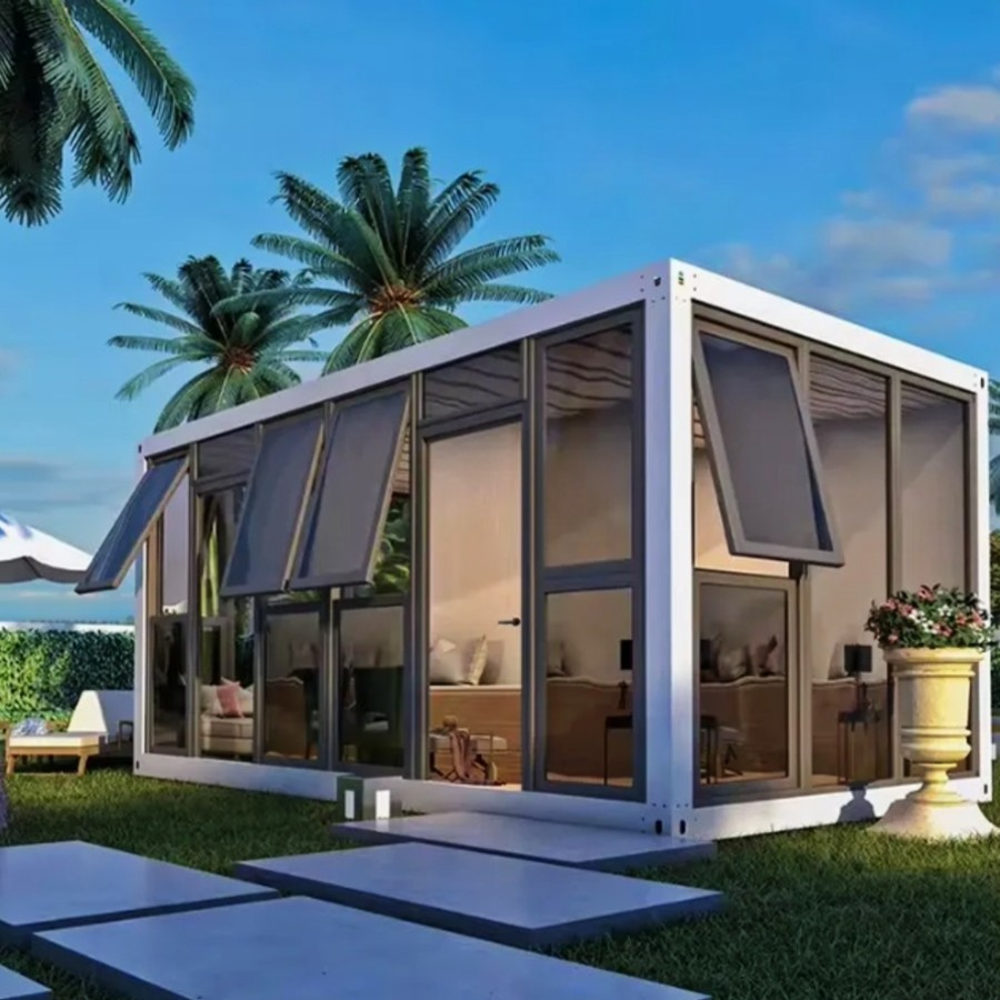 ユニットハウス(1棟当たり18m2)に一面ガラス等を取りつけた金額となります。