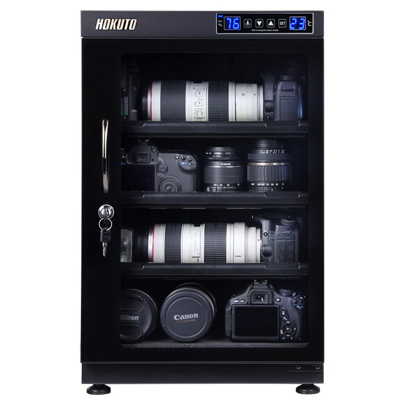 業界で初めてタッチスクリーンを搭載したモデルです。この道15年の有名メーカーで生産しております。 多くのプロカメラマンが愛用されてるモデルです。 ランニングコストが安い:1日2円のランニングコスト、2か月で缶コーヒー1本分です。商品名: HOKUTO防湿庫・ドライボックスタッチスクリーン搭載88L 防湿庫 業界初のタッチスクリーン搭載 LED照明内蔵 5年保証 容量 :88L 電源 :100V(50/60Hz) 外寸 :W380mm×D390mm×H604mm 内寸 :W376mm×D360mm×H555mm(突起部除く) 設定湿度範囲: 25%〜80%RH 材質 キャビネット本体: スチール製メラミン焼付塗装 扉: マグネット式/正面強化ガラス 付属品 ・ACアダプター: ・スポンジマット(平と波タイプそれぞれ1枚) ・デジタル湿度/温度計(電池不要) ・簡易版日本語説明書注意事項:防湿庫発送時の破損リスクを最低限にするため、工場出荷時取っ手は内側に取り付けております、ご使用前に表側に取り付けてご使用ください。※ 除湿機能のみ加湿機能ありません。内蔵LED照明は白のみです。検索用:HOKUTO 防湿庫 ドライボックス カメラ保管庫 デシケーター カメラカビ対策 除湿庫 レンズカビ対策 5年保証 送料無料消費電力:HOKUTO HBシリーズに搭載された全自動ペルチェ式電子ドライユニットは「超省エネ・エコ設計」1日約1.2円が目安です。(※1kWh=22円 自動制御運転時間を10時間で算出、稼働環境によって少し変動します)極めて湿度が高い環境に設置されでも24時間除湿運転した場合でも1日約2.5円の超省エネ設計です。内蔵LED照明を加える事で暗いところでも使いやすい。アジャスターを装備しており不整地でも設置可能。ロックキー付き小さいお子さんの悪戯にも安心。強化ガラスを使用する事で割れにくい、割ったとしても怪我しにくい。操作&設置が簡単、管理が楽になります:HOKUTOの防湿庫はコンセントに通電するだけで面倒な乾燥剤の交換不要です、管理がとても楽になります。気密性の高いキャビネットが日常生活で発生するホコリを軽減し、機械が常に安定した湿度環境を保ちます。ほんの少し排熱がありますので、背面及び側面部に、3cm以上の隙間を開けて設置ください。(100V 50/60Hz・日本国内屋内仕様 国内規格の電気安全法(通称PSE)取得しております)アフターサービス:当店安心な5年保証 。世界20カ国発売の実績、信頼の品質、万が一故障の場合は当店で無償修理いたします。(電気回路部分のみ、機械部分は対象外)