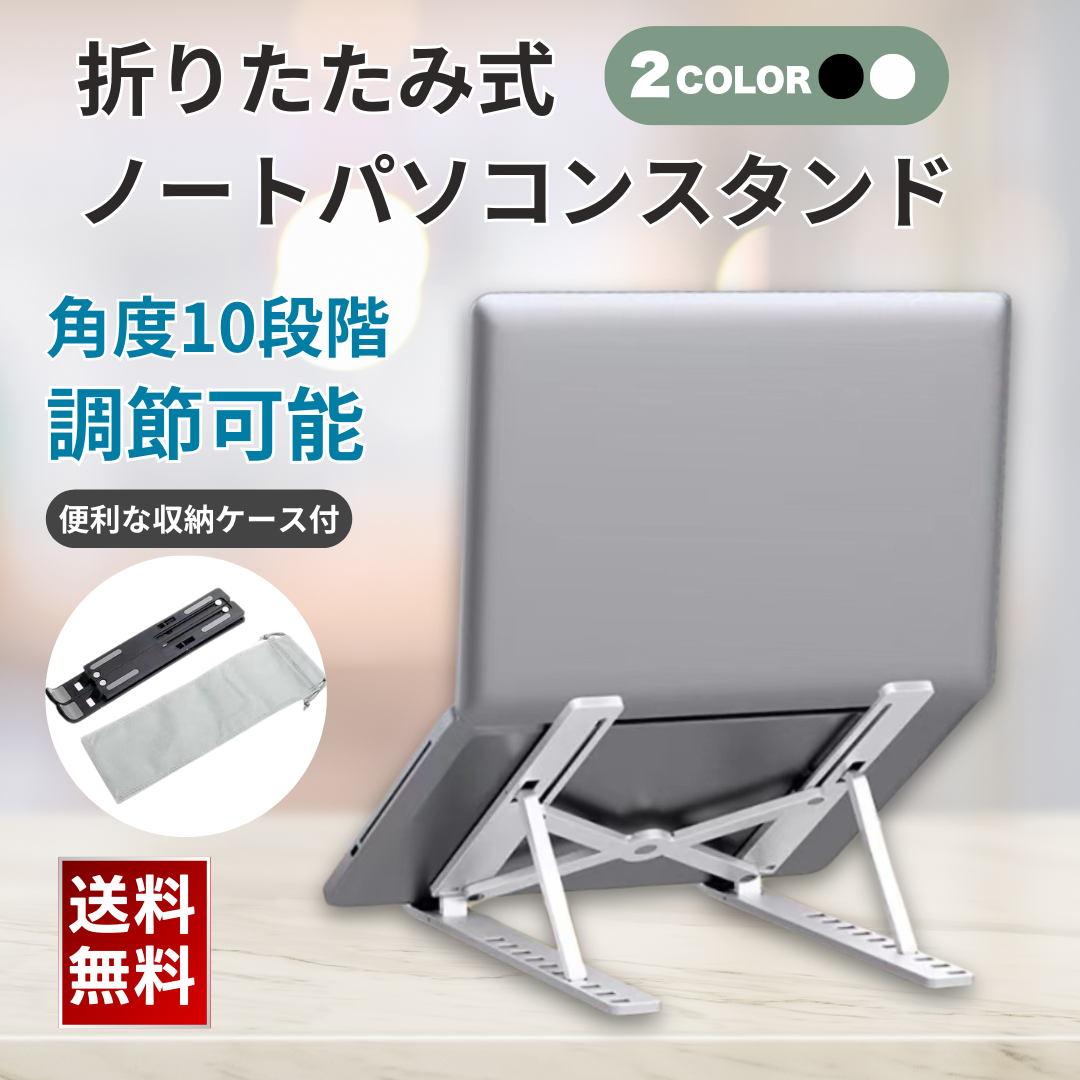 商品名:ノートパソコンスタンド PCスタンド 軽量 コンパクト 折りたたみ 10段階調整 冷却