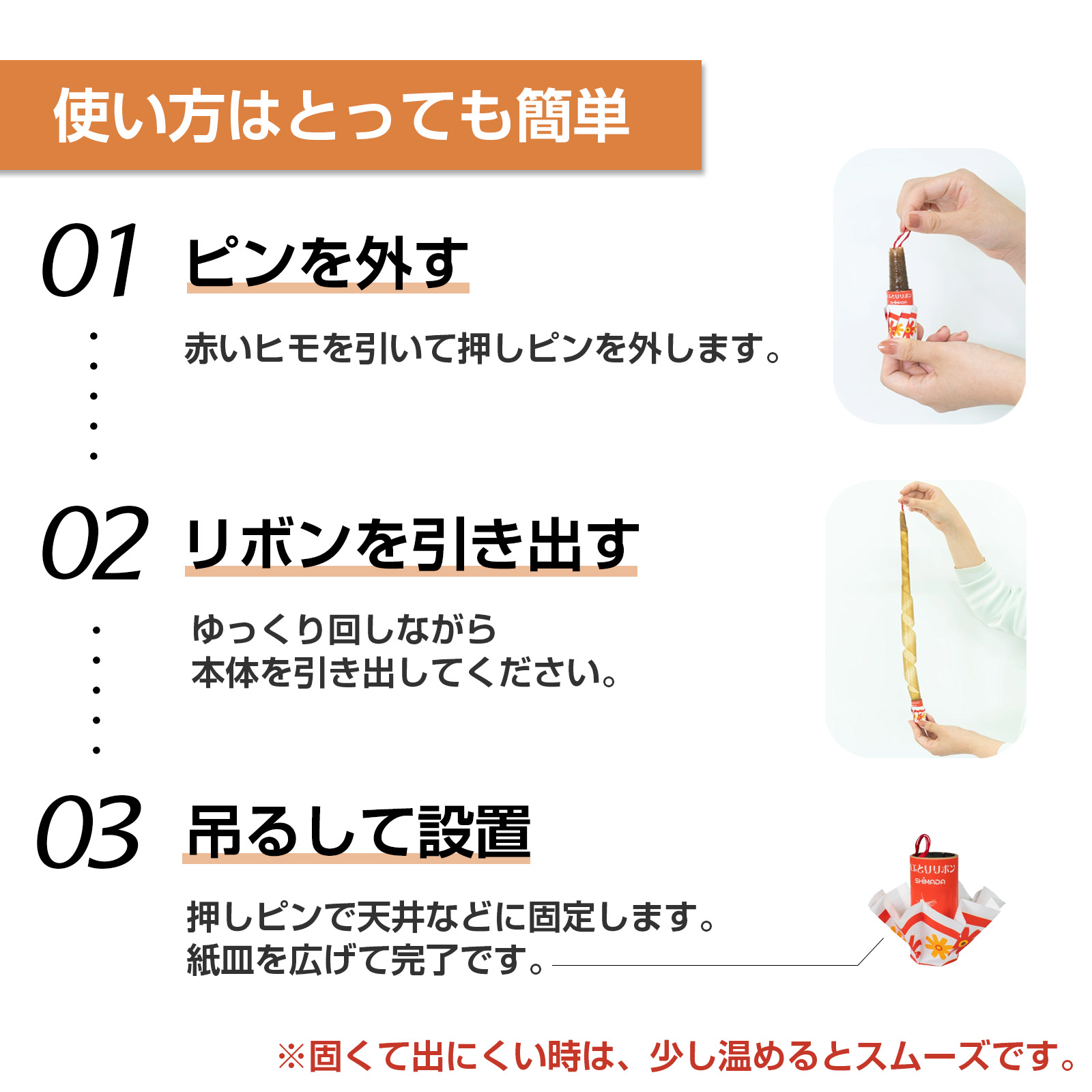【リニューアル】ハエとりリボン 5本入 3個セット SHIMADA 蝿とりリボン 強力粘着 昔ながらのハエ取り紙