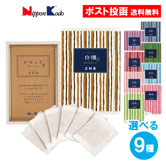 かゆらぎ 名刺香 桐箱 6入 白檀 沈香 金木犀 緑茶 薔薇 石榴 藤 茉莉花 白桃 日本香堂