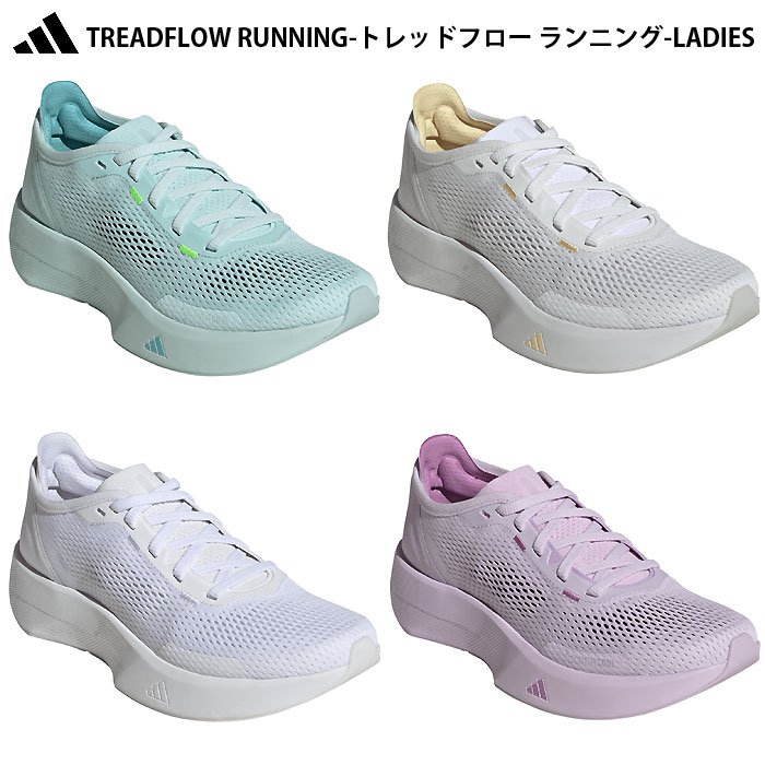 商品説明 | クライマクール搭載で涼しくドライな状態をキープする、軽量で透湿性に優れたトレッドミル用ランニングシューズ。 室内でもあなたのリズムを保つサポートをする、トレッドミルでのランニングのために設計されたadidasトレッドフローランニングシューズ。 |