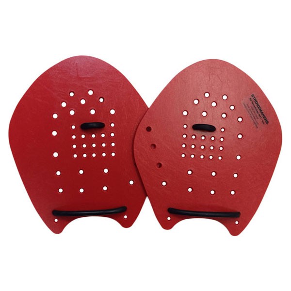従来モデルよりもプラスティック素材の強度が増し、硬く重みも増しました。表面もレザー風の肌触りに。パドルの大きさ・形・用途等は今までのストロークメーカーと変わりませんので安心してお使いいただけます。筋力アップのためだけのパドルではなく、理想的なストロークを実現するためのトレーニングアイテムです。パドルにある複数の穴は水流の抵抗を考えて作られており、肩への負担を軽くすることができます。キャッチからプル、フィニッシュまで飛躍的にストローク技術を改善し、理想的な泳ぎにつなげることができます。指と手首が固定できるので、泳いでいても気になりません。
