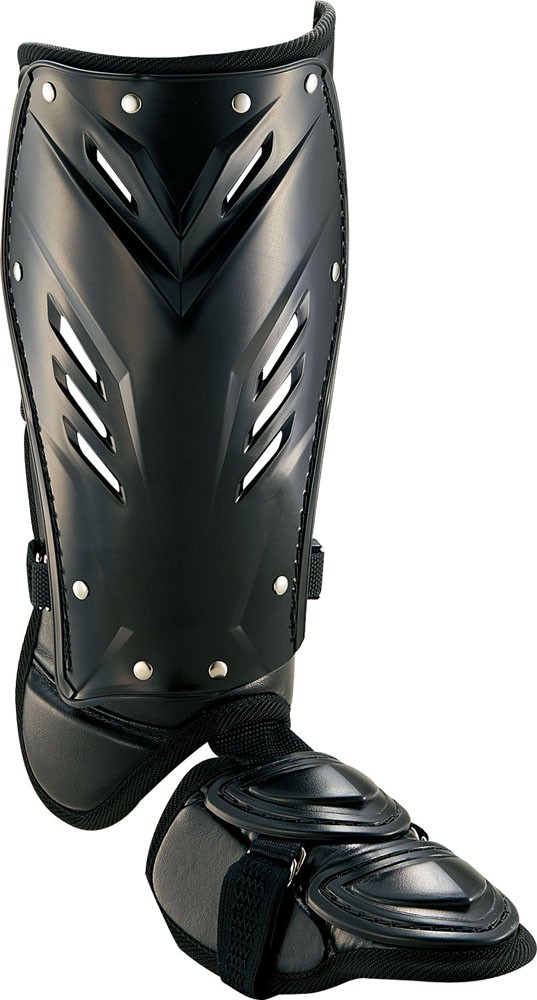 | カラー・仕様・サイズ | 素材:ポリエチレン・合成皮革 サイズ:フリー(スネ部270mm) 重量:約350g 右打者用 |