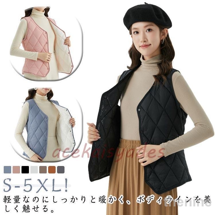 超軽量 裏起毛 ダウンベスト レディース インナーベスト アウター Vネック ダウン ベスト 中綿ベスト インナーダウン ライトダウン FCZYライト