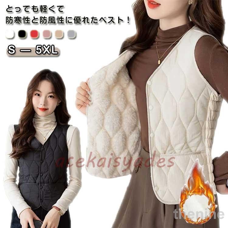 細身 スリム ダウンベスト レディース インナーベスト ベスト 裏ボア 裏起毛 インナーダウン ライトダウン FCZYライト エコダウン 防寒ベスト