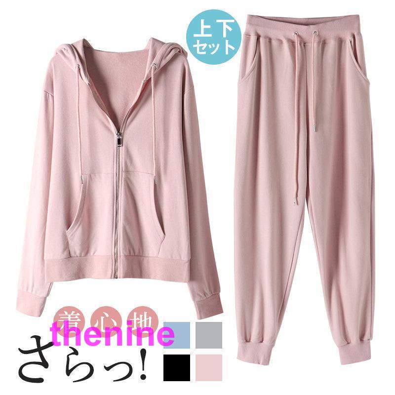 ジャージ セットアップ レディース 上下セット スウェット フード付き スポーツ 韓国風 運動着 部屋着 ルームウェア シンプル パジャマ ヨガウェア