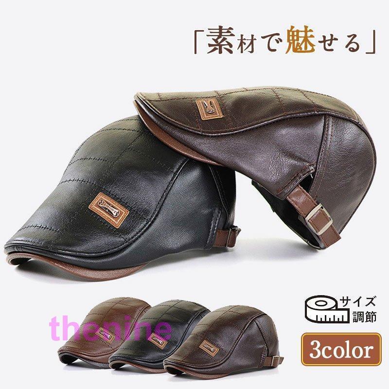 帽子 メンズ ハンチング レディース レザー PU キャップ サイズ調整可能 秋 冬 防寒 ゴルフ アウトドア 紳士用 軽量 父の日 カジュアル