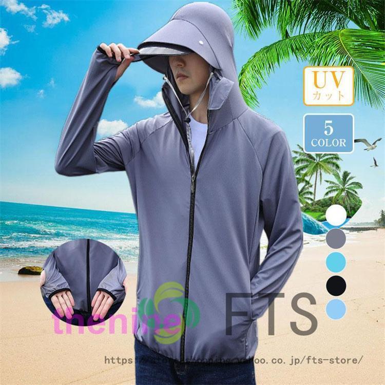 UVパーカー 長袖 薄手 パーカー フード 羽織り 涼しい ラッシュガード UVカット 冷感 接触冷感 日焼け止め 無地 スポーツウェア