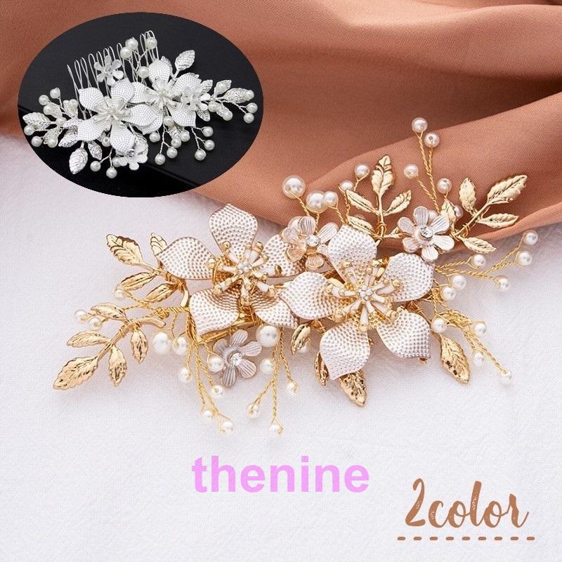 フェイクパールとラインストーンが華やかなヘアコームです。
